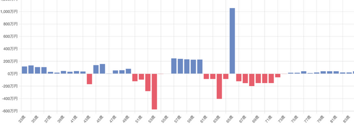これから先のお金に余裕がある・貯蓄できる時期と、お金が足りなくなる時期・金額が把握できます。